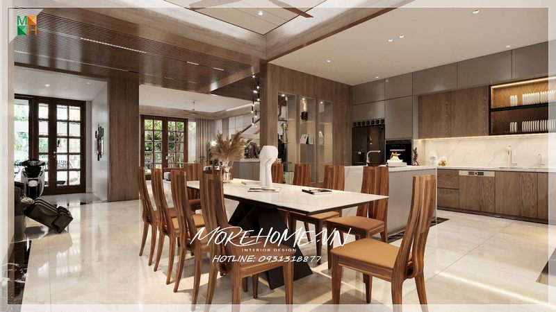 Cửa gỗ biệt thự phong cách tân cổ điển sang trọng, gam màu nâu trầm tạo sự sang trọng và cuốn hút hơn